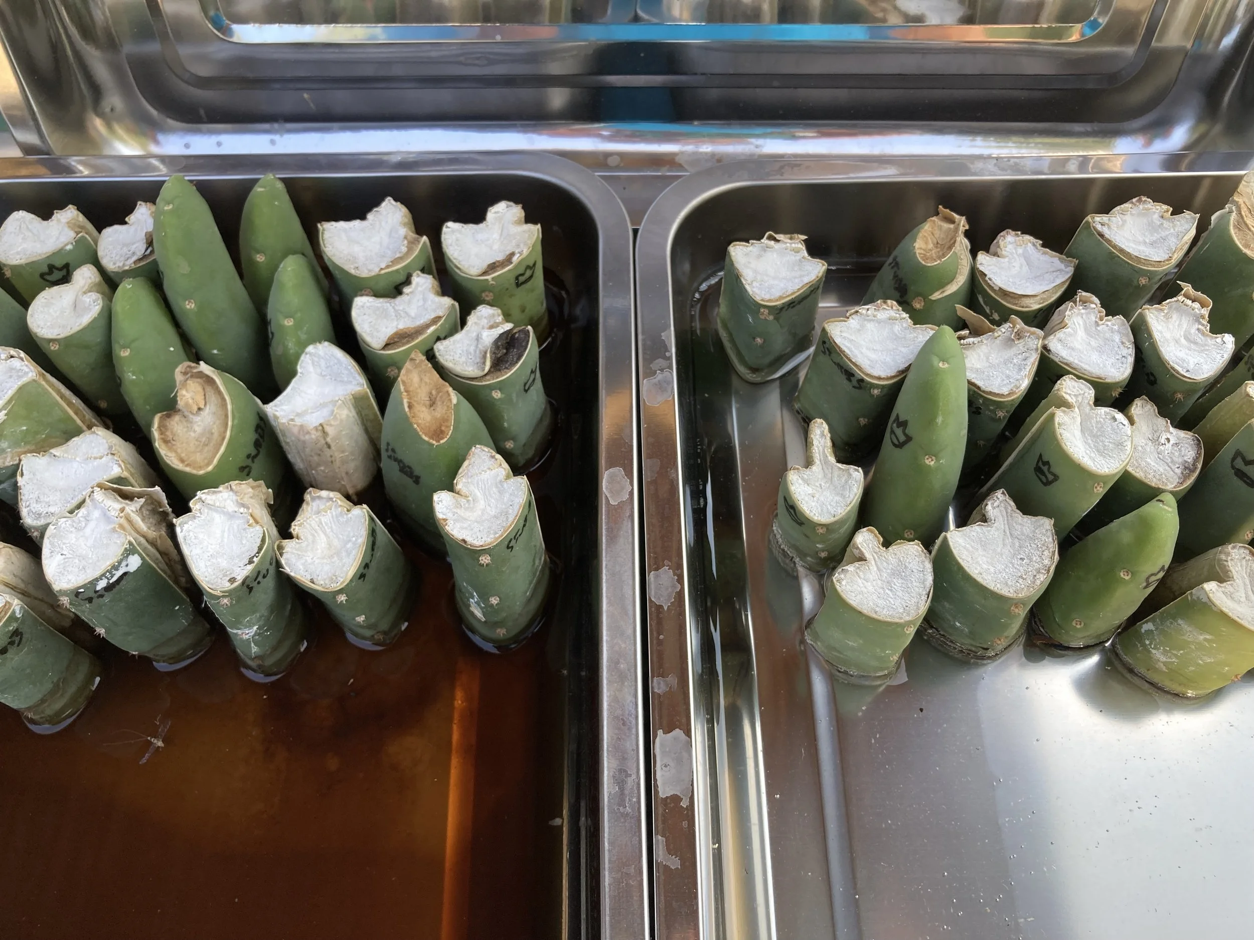 Examining cactus this year (2025) they looked ready to harvest at 2 weeks. I harvested some at 3 weeks and they have been cured very nicely without excessive dehydration. They were cured in the shade during some very hot weather. I think two weeks will be enough. Three weeks was definitely enough. Water the cactus well while they are healing on the plant so that the ribs remain hydrated as much as possible. Ideally they will have a maximum amount of water when cut, feeling very plump. If they are not plump, water consistently and try to get them to where they look fat and feel very stiff and solid before you cut.