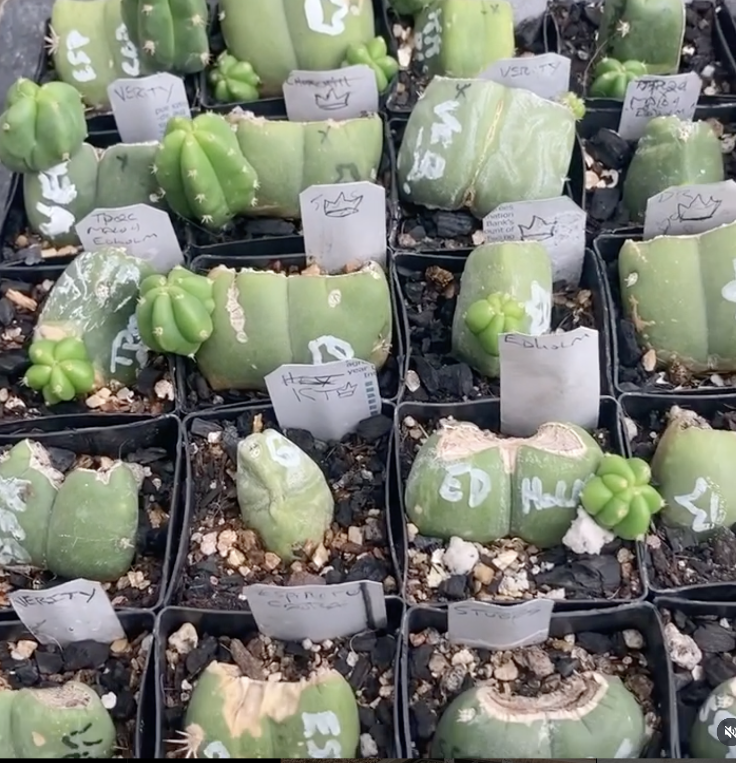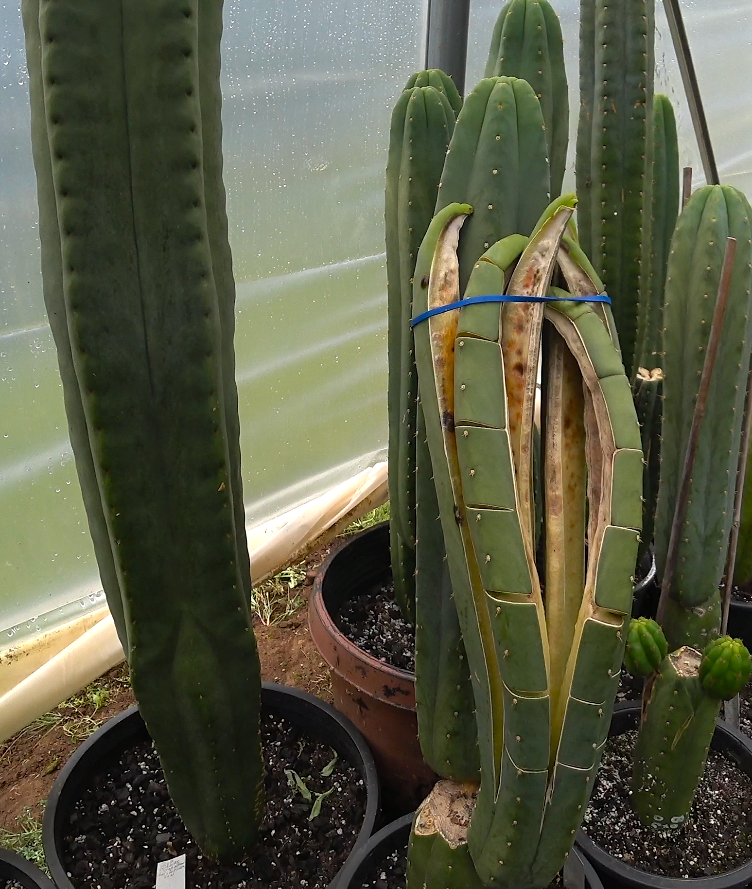 I think San Pedro should be growing all over the place. If mega nurseries can produce thousands of plants and ship them all over the place to big box stores, that sounds great to me. It is not the perfect world, but it is a world with more san pedro! It would be nice to see them producing something besides the common PC clone though. Say a nursery wanted to expand it’s parent plantings for propagation material with some new varieties. rooting one larger cutting at a time is only going to do that so fast. Grafting will do it pretty fast if the stock is available to graft to. Lets take stubbs as an example. There are about 7 or 8 grafts of Stubbs, the original parent plant and two rooting pups. That is the sum total of all examples of Stubbs in the whole world. Oh wait, except the 54 riblets I made with one 18 to 20 inch section of column. Yeah, there’s that…