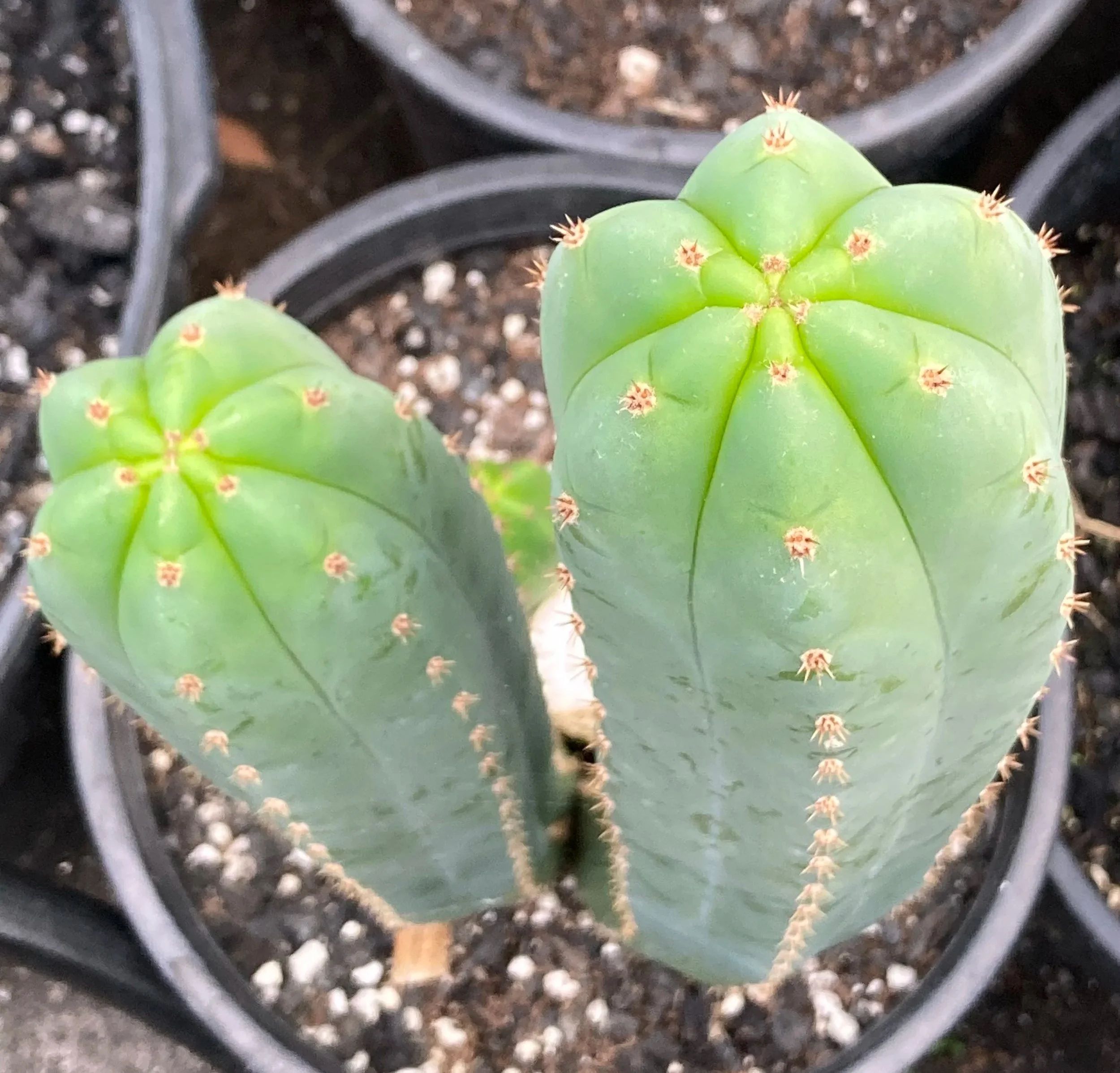 This page has page links to information about varieties that I introduce. Growing thousands of seedlings every season, means that I get to vet a lot of baby cactus looking for interesting morphological traits. I generally pull a few hundred seedlings a year for further observation. While I will eventually be breeding intentionally as the cactus I want to work with come into flower, for now I am in a process of selection for certain traits. I have had the opportunity to comb over what must be in the tens of thousands of seedlngs so far. The cactus introduced here, as of 2025, are the results of that selection. I don’t take naming and propagating a cactus too lightly. There are a lot of named clones out there already and naming willy nilly is just confusing and pointless. A plant has to stand out in some way from the crowd. I’m not saying these are the very best, just the best ones according to me ;) In selecting stuff to clone, I’m comparing these to other cactus I’ve collected and of course the other seedlings. Out of the few hundred I usually pull each year from seedling flats, very few are kept. When the first years growth is done, I reject at least 1/3. By the end of the second year the bulk of those remaining are used as grafting stock or sold leaving probably a dozen for less. Most of those I won’t even continue to grow in the long run. I’ve even named and propagated one extensively, then decided not to release it because I felt that it didn’t live up to expectations. I tend to select for specific things that trend toward the practical, but occasionally I save something because it is just especially pretty or uniquely shaped etc. The results are below. Once I dedicate myself to propagation for eventual release, cultivars end up on this page. Some have been released and some haven’t. I’m working hard on shortening the time it takes to propagate a lot of cactus with a small amount of material. Most typically though, the first cuts are going to end up on auction until there are a lot of copies and can start selling them in the webstore. The best way to keep tabs on what I’m releasing, as well as when seedlings drop, is to sub to the blog mail list.